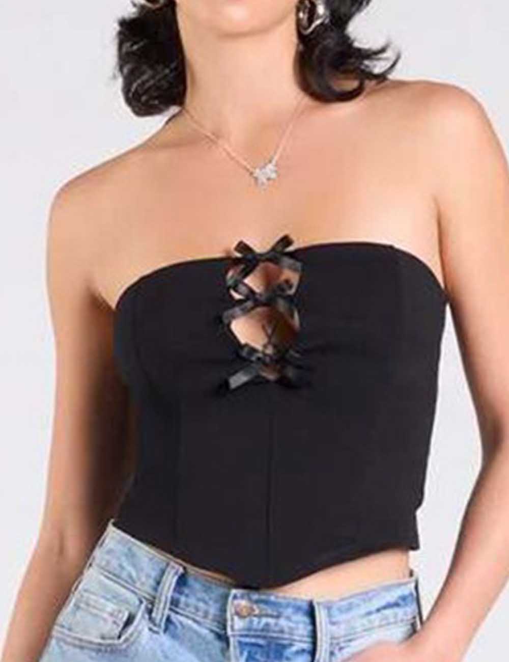 Ladies Solid Color Bowknots Cut Out Sleeveless Tube Top