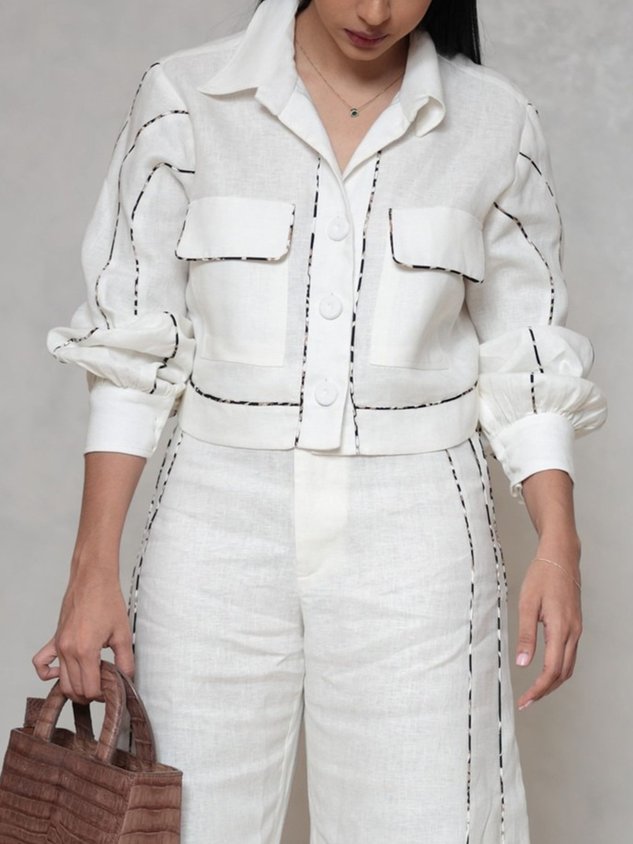 Cotton And Linen Casual Plain Binding Shirt