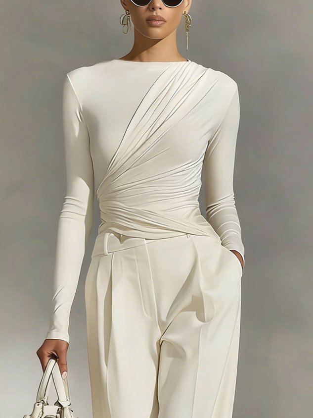 Cotton Urban Plain Ruched Mock Neck T-shirt