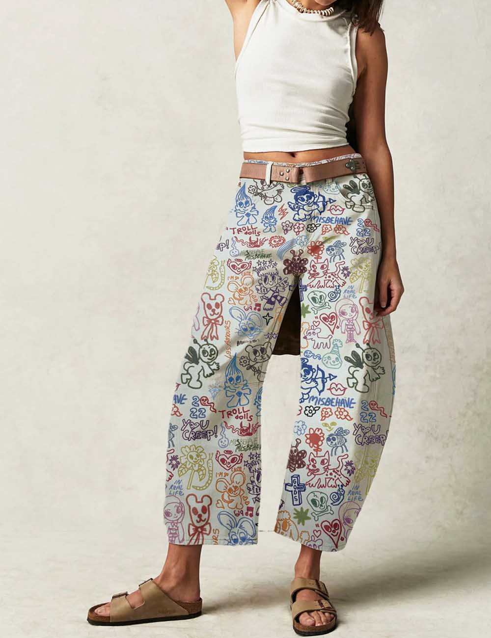 Ladies Barrel Print Jeans Daily Denim Pants SKP5KC67