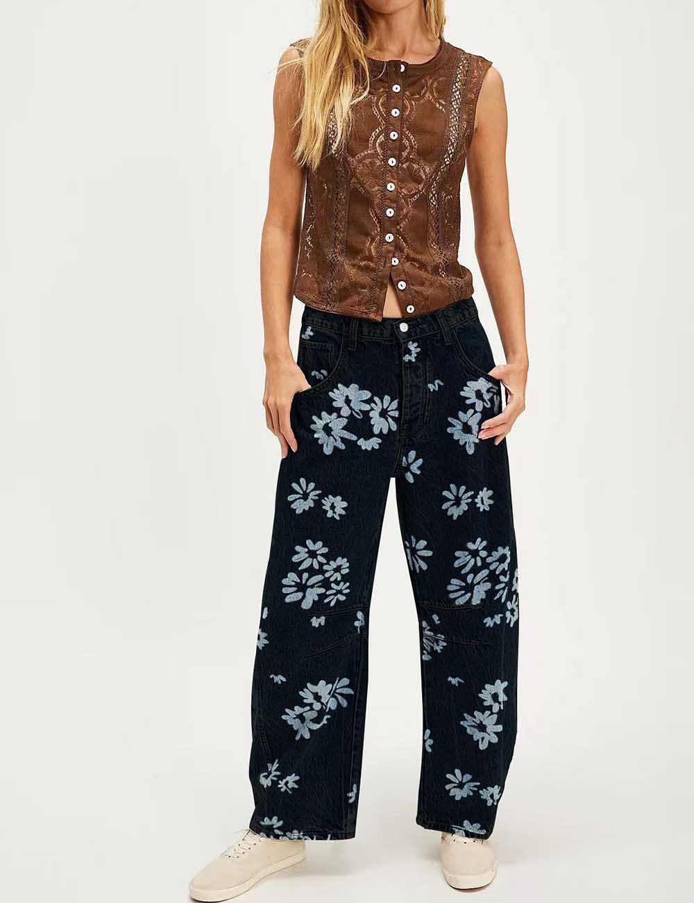 Ladies Barrel Print Jeans Daily Denim Pants SKP5KC67