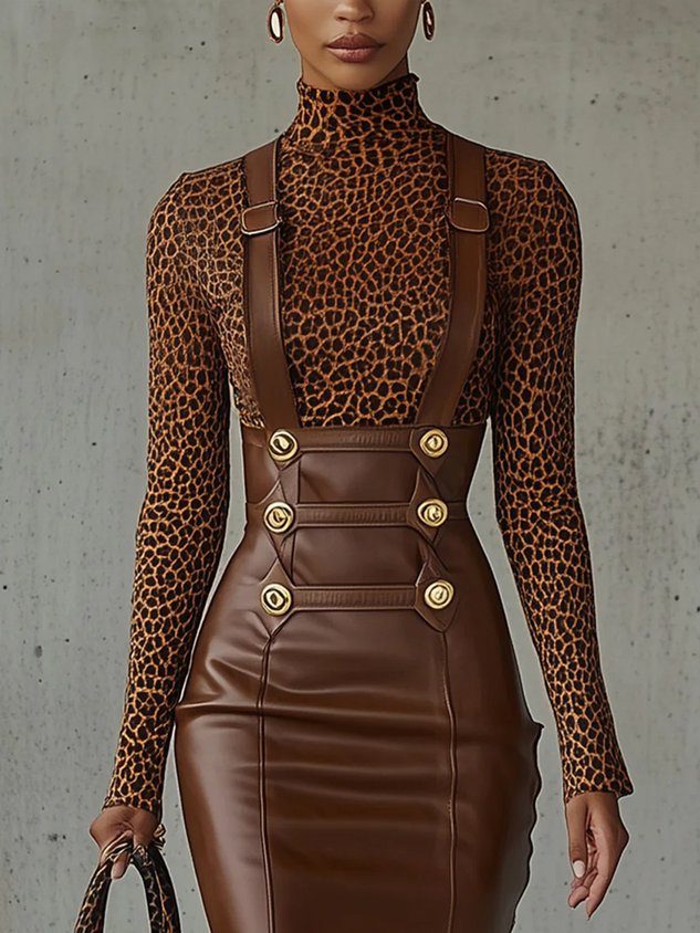 Urban Animal Print Printing Turtleneck T-shirt