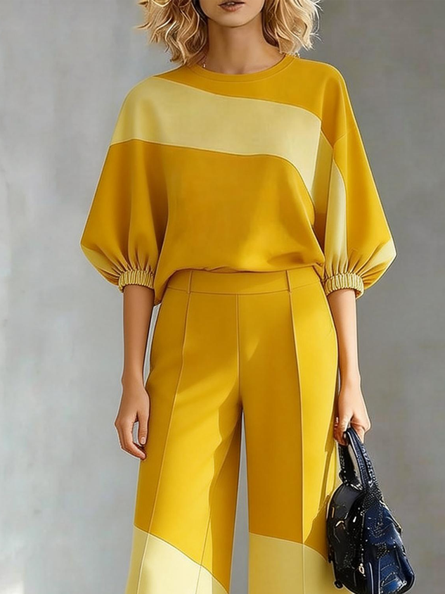 Urban Color Block Crew Neck Blouse