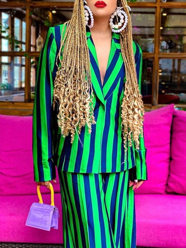Urban Lapel Collar Striped Long Sleeve Loosen Blazer