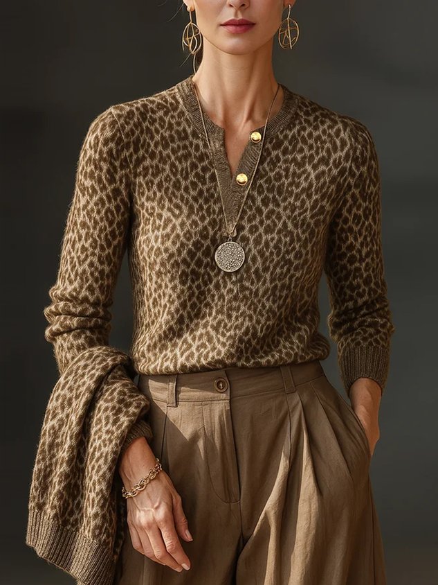 Yarn/Wool Yarn Urban Leopard Buttoned Sweater